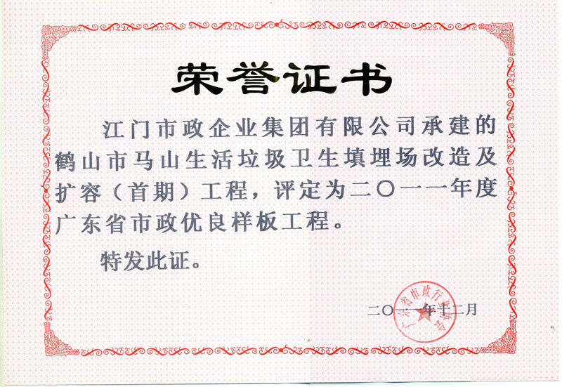 優(yōu)良工程證書(shū)