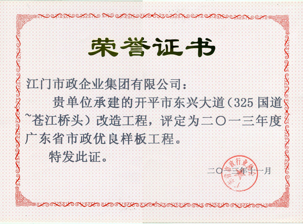開(kāi)平市東興大道(325國(guó)道~蒼江橋頭)改造工程(2013年省優(yōu))