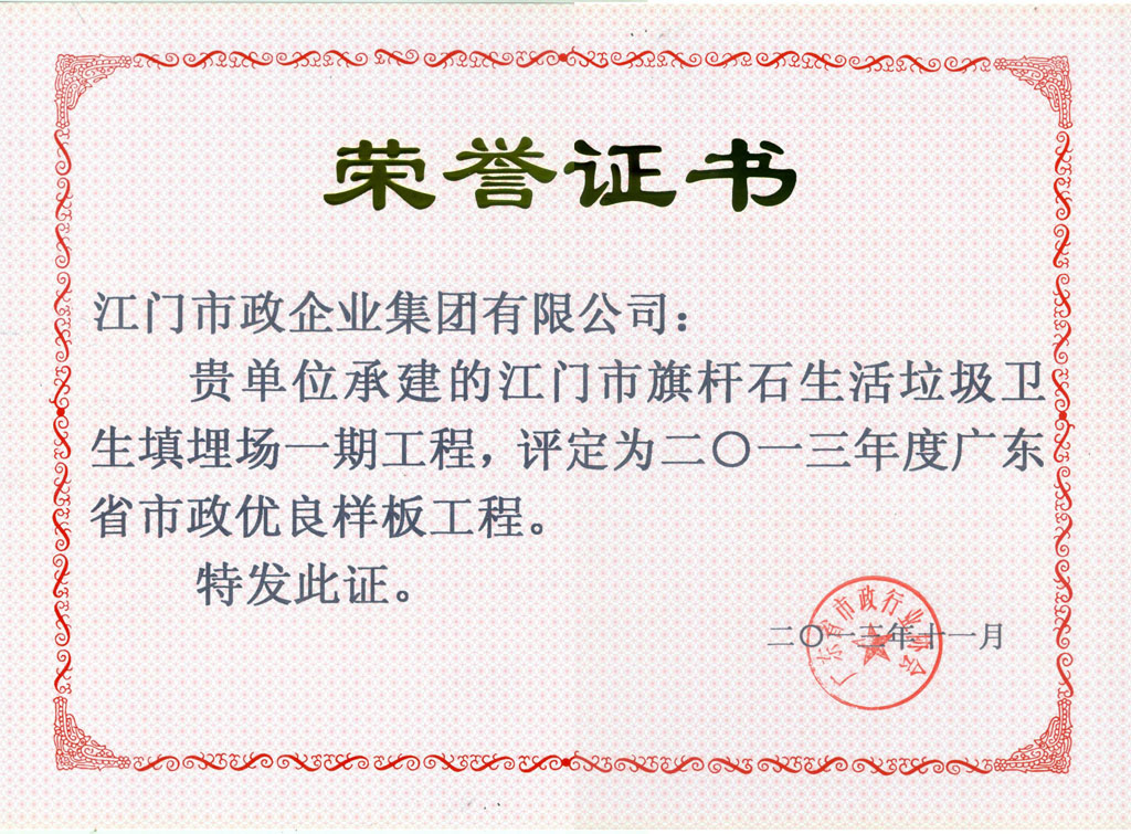 江門(mén)市旗桿石生活垃圾填埋場(chǎng)一期工程(2013年省優(yōu))