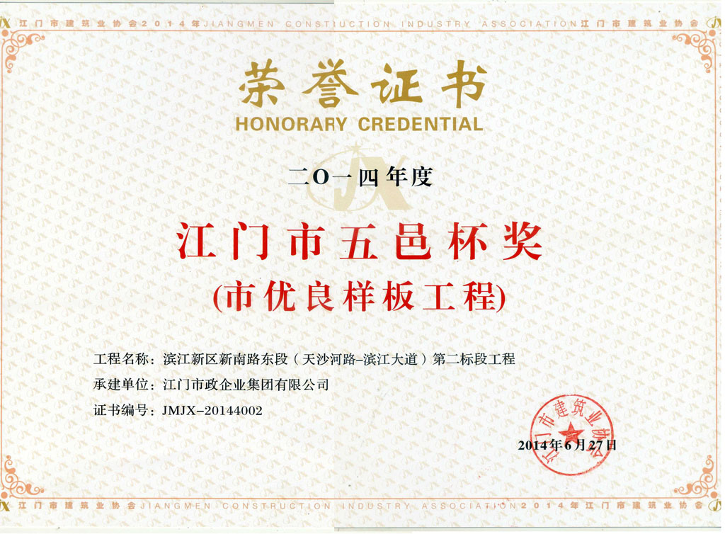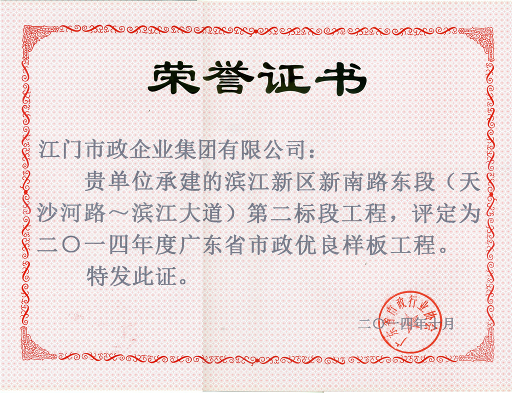 濱江新區(qū)新南路東段工程-2014年五邑杯獎(jiǎng)