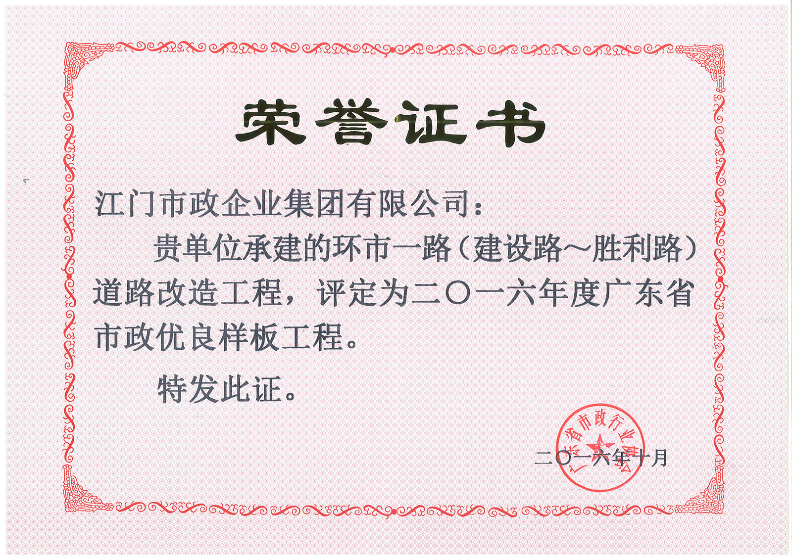 2016年度廣東省市政優(yōu)良樣板工程-環(huán)市一路(建設(shè)路~勝利路)道路改造工程