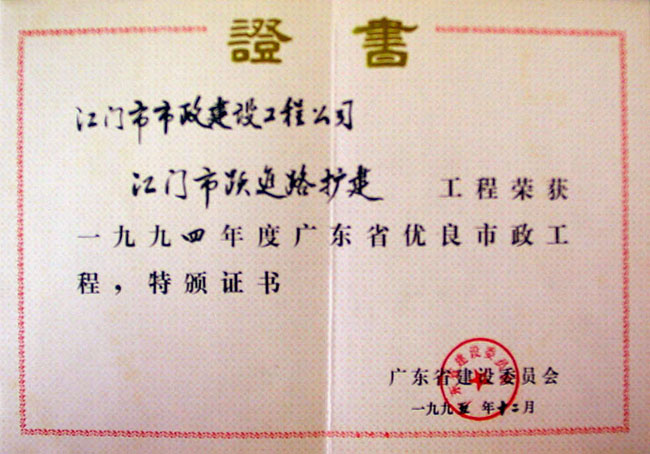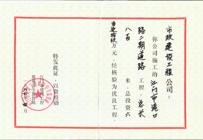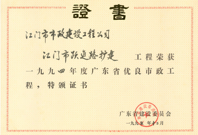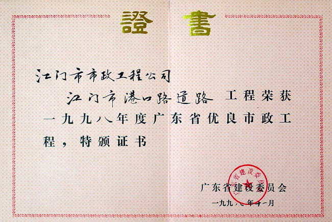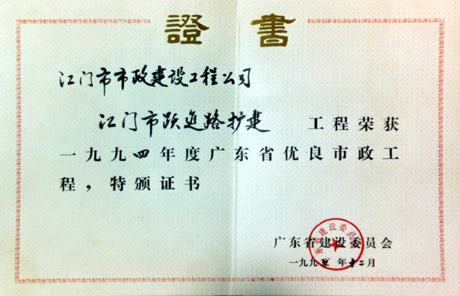 優(yōu)良工程證書